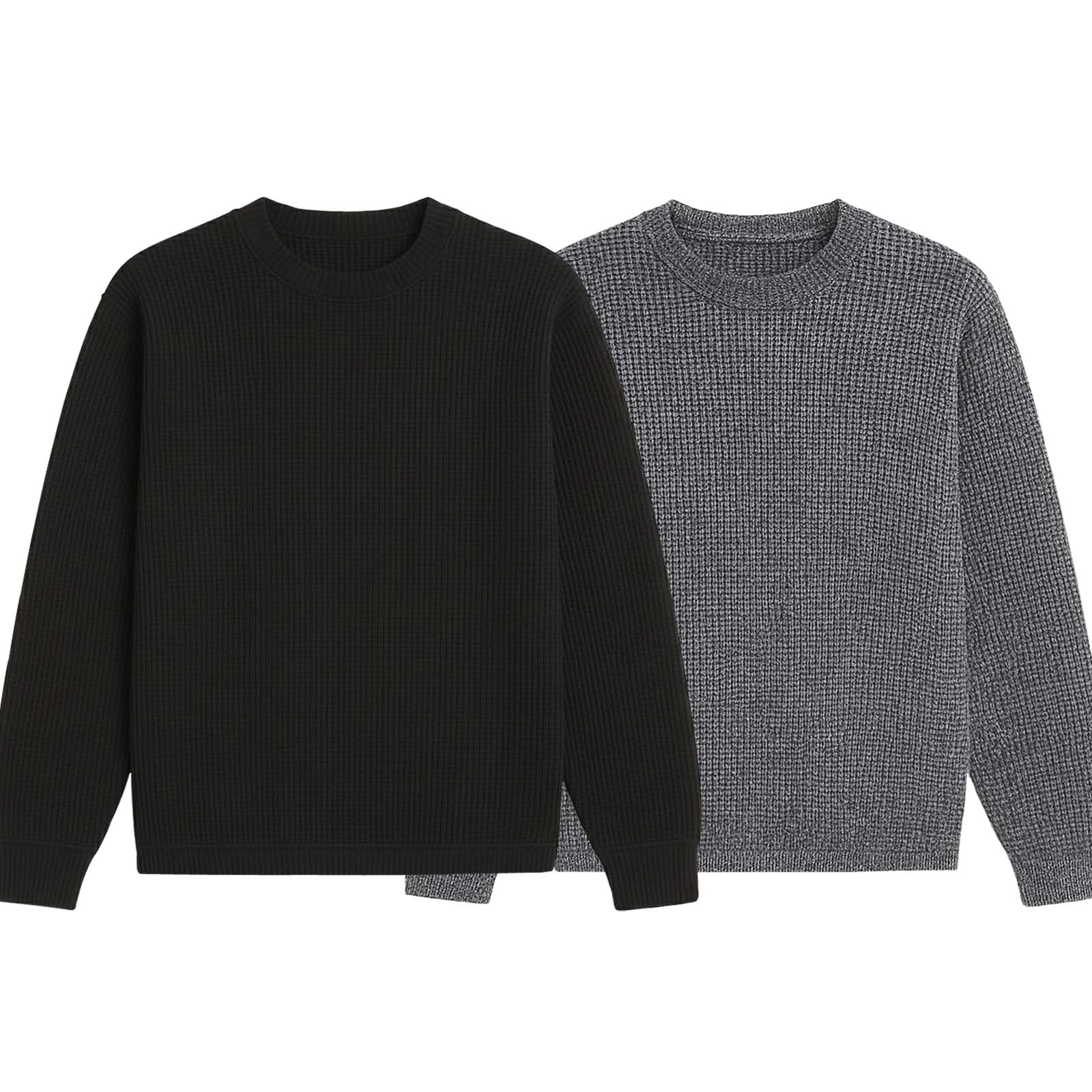 2 Pieces Waffle Knit SweatShirt ( BLACK & TEXTURE GREY )