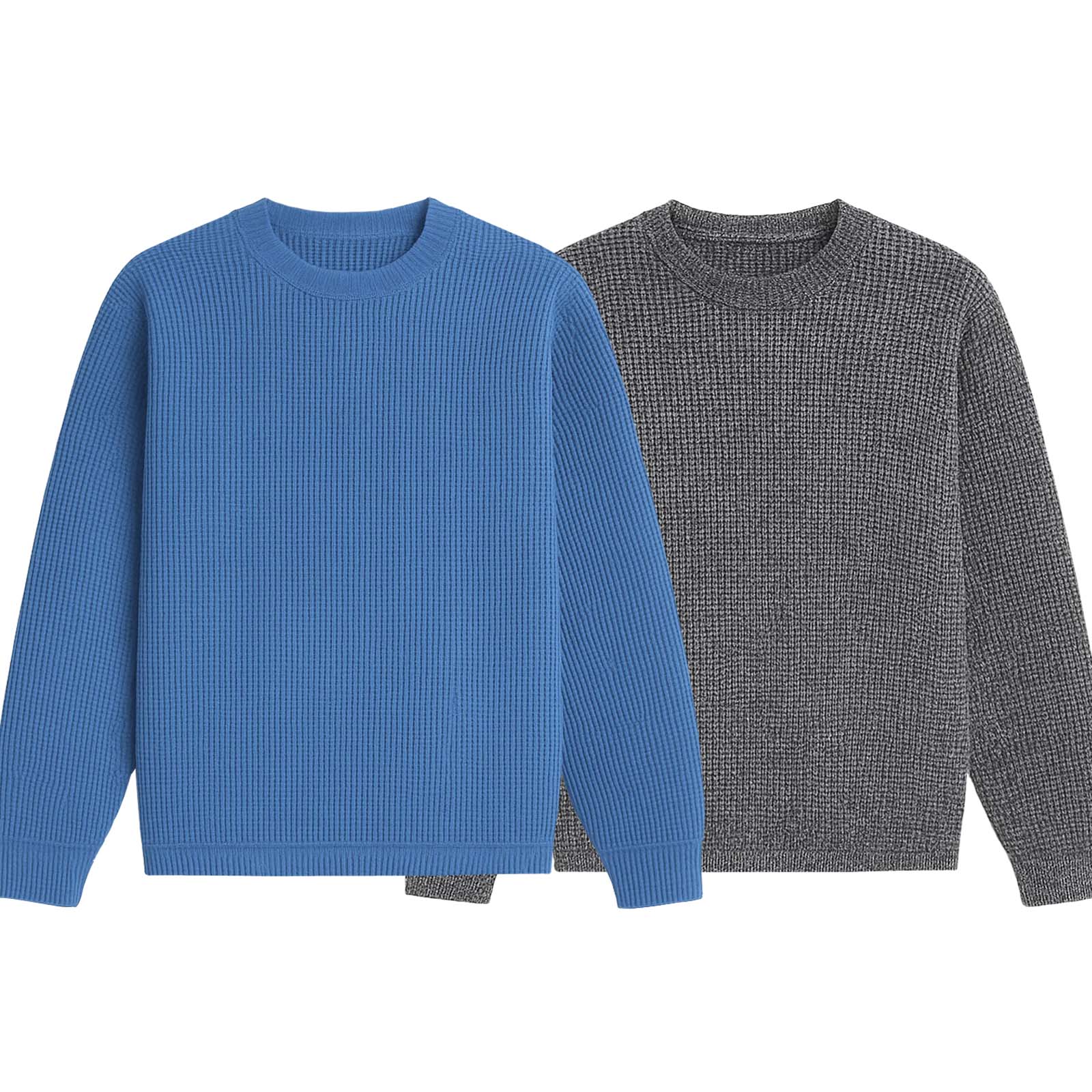 2 Pieces Waffle Knit SweatShirt ( BLUE & TEXTURE GREY )